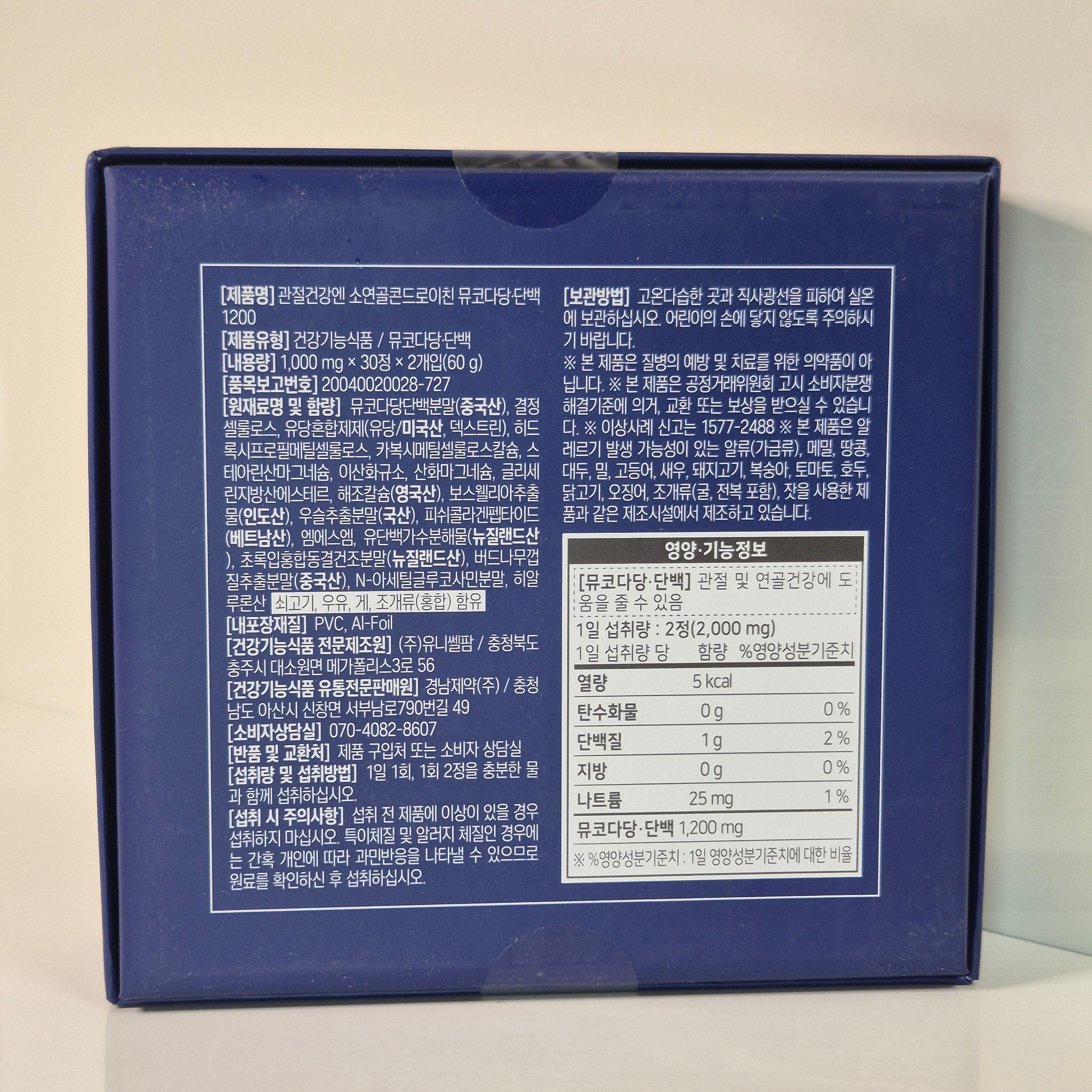 경남제약 관절건강엔 소연골 콘드로이친 뮤코다당단백 1200 건강기능식품, 60정, 2개 - 기타건강식